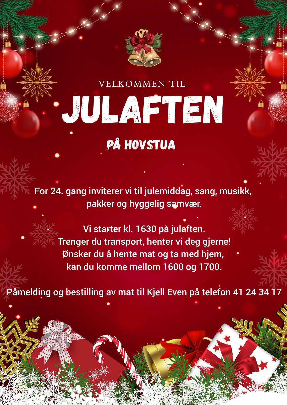 I år inviterer vi for 24. gang til tradisjonell julaftenfeiring på Hovstua.